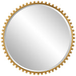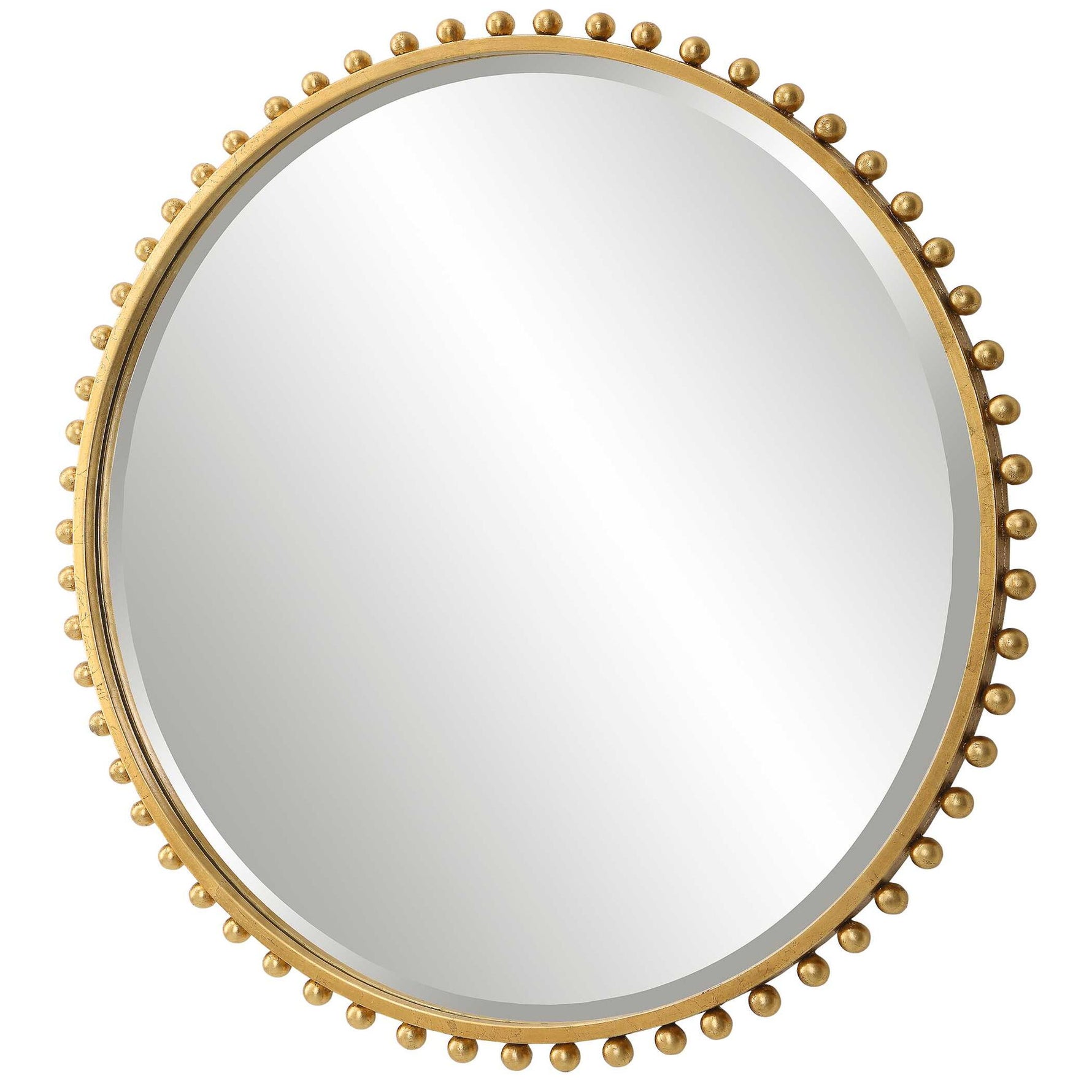 - Petite Iron Spheres Line The Outer Edge Of This Round Frame, Finished In A Timeless Gold Leaf. Mirror Features A Generous 1 1/4" Bevel.