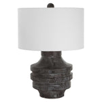 - The Timber Table Lamp Offers A Touch Of Rustic Charm With A Carved Wood Look In A Transparent Black Stain With Warm Undertones And A Light White Glaze Accentuating The Faux Wood Grain.