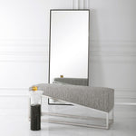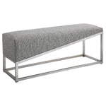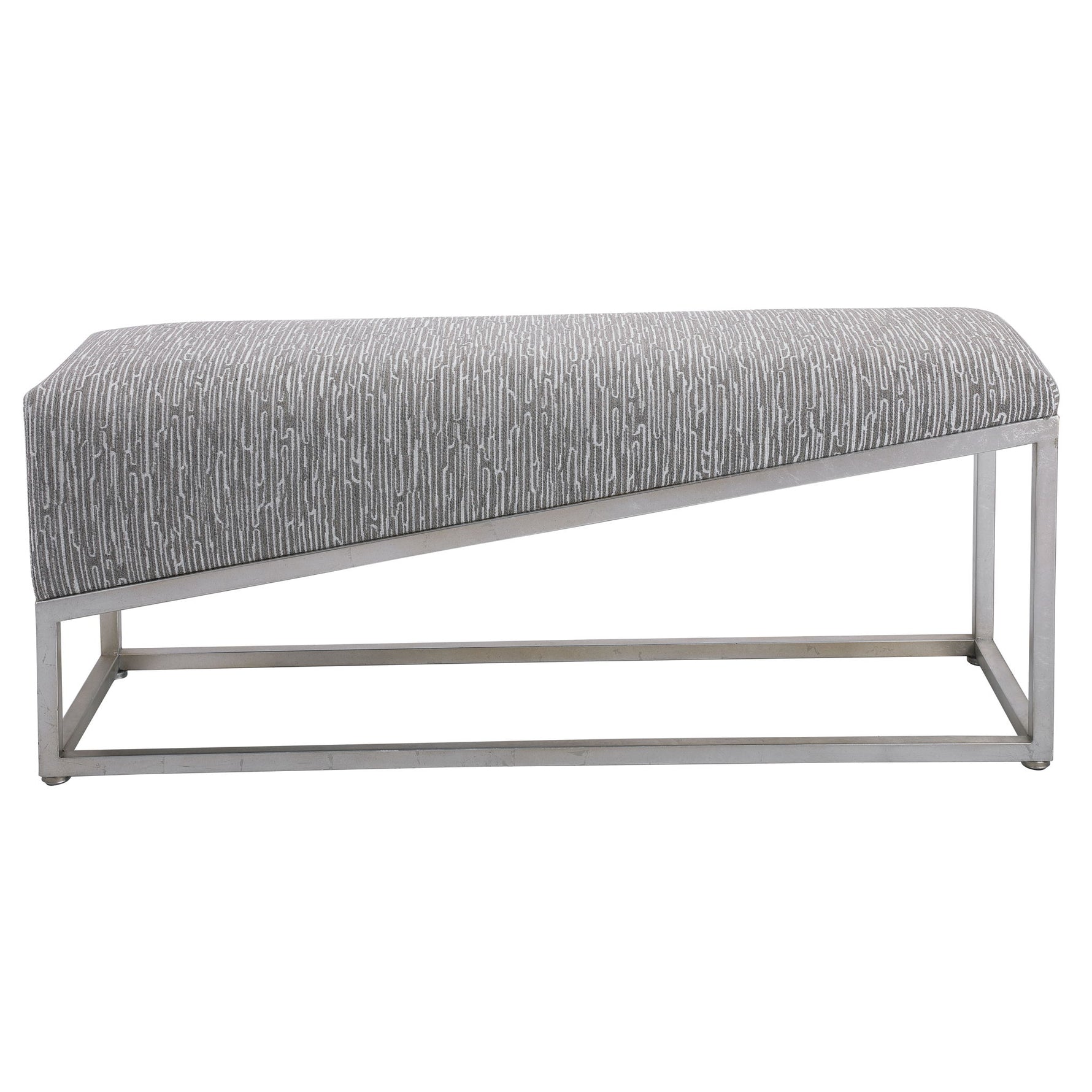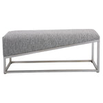 - Showcasing Sleek Angular Lines, This Bench Is The Perfect Modern Accent. The Forged Iron Base Is Finished In Brushed Silver Leaf And Is Accented By A Medium Gray And White Geometric Fabric.