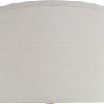 Grooved, Transparent Charcoal Gray Glass Accented With Antiqued Brass Plated Details. The Round Hardback Drum Shade Is A Light Beige With Natural Slubbing.