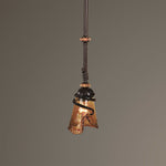 Hand Wrought, Oil Rubbed Bronze Metal Curls Around A Heavy, Handmade Glass. Its Amber Tonalities Are Key In This Exciting Mix Of Materials. 1-100 Watt Max, Edison Socket. Bulb Not Included. Supplied With 15' Wire And 4' Chain For Adjustable Installation.