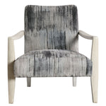 Reminiscent Of Tie Dye, This Statement Accent Chair Features A Unique Abstract Charcoal, Gray And Blue Chenille Fabric With A Gently Curved Exposed Solid Wood Frame In A Natural Off-white Finish.